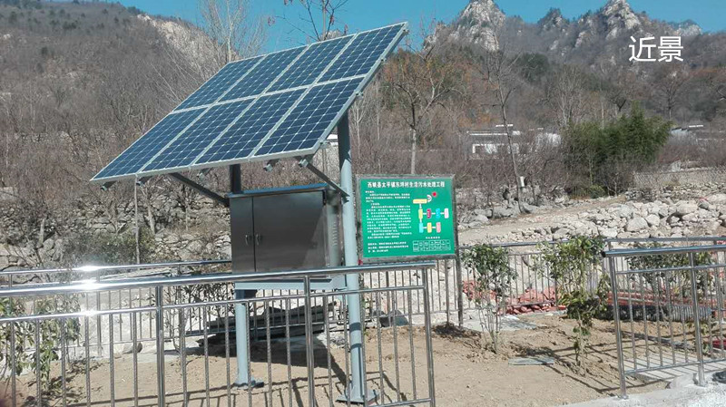 居民日常生活污水通过排水管网进入污水处理系统,经过厌氧、缺氧、好氧等生化处理,使水中的污染物质得以降解,通过澄清沉淀,从而达标排放。系统以传统成熟的A-A-O污水处理技术为基础,并结合现代的太阳能光伏技术,以太阳能为动力,与传统污水处理技术相比较,系统低碳环保节能,占地面积小,自动化程度高,操作维护方便,运行成本几乎为零,更利于农村地区推广普及。