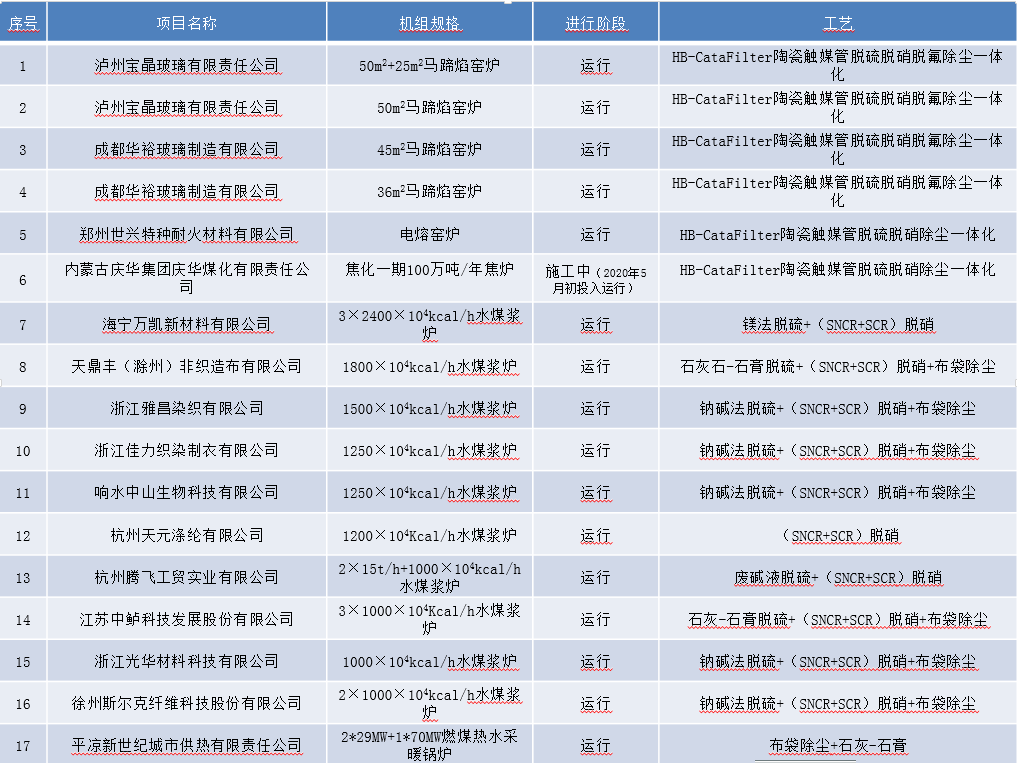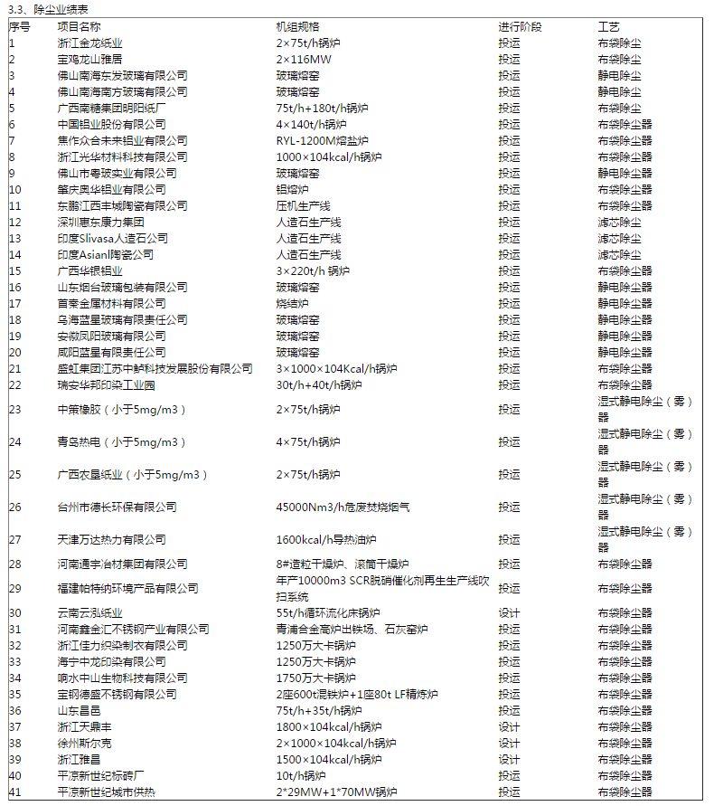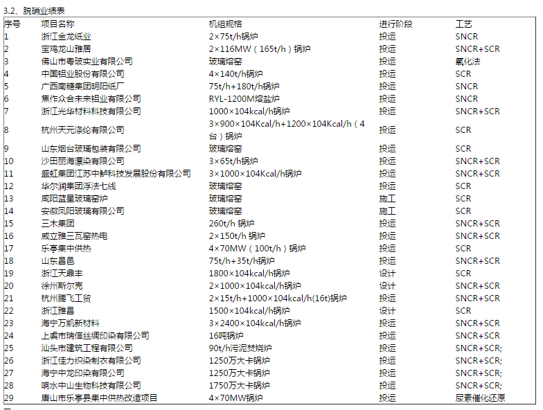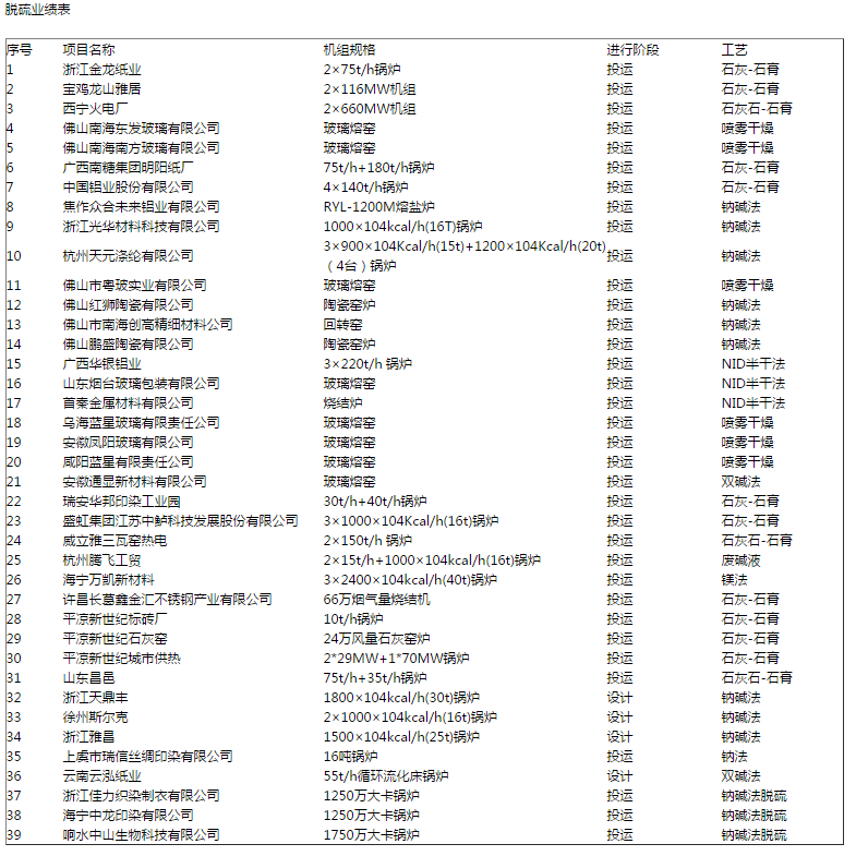 脱硫脱硝除尘一体化工程业绩及常规脱硫脱硝除尘工程业绩